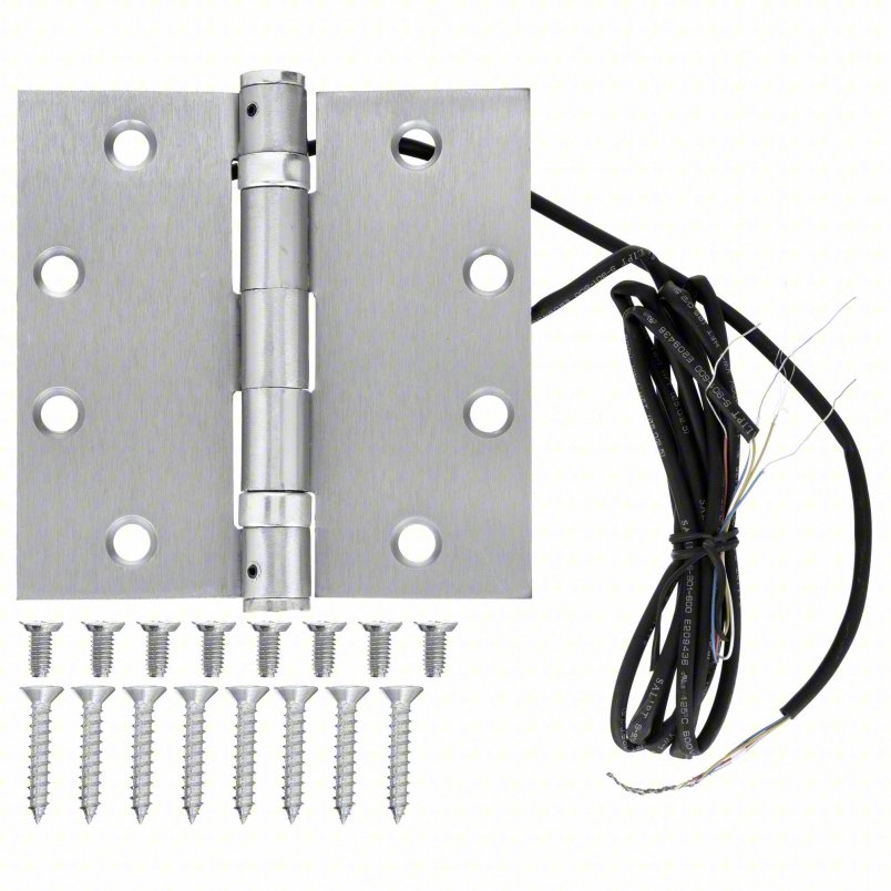 SDC Electrified Hinge: Stainless Steel, 4 in Leaf Ht, 2 1/4 in Leaf Wd